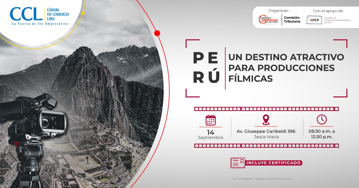 El Perú es considerado uno de los países más ricos culturalmente a nivel global, con regiones variadas y sitios arqueológicos con gran potencial fílmico. Sin embargo, carece de un marco legal que favorezca el desarrollo de grandes producciones audiovisuales. Es así que, con el objetivo de promover la industria audiovisual en el Perú, la Cámara de Comercio de Lima (CCL) con el apoyo de las diferentes Asociaciones de Producción Cinematográfica del país, organiza el foro “Perú: Un destino atractivo para locaciones fílmicas”.