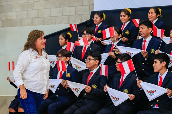 La presidenta Dina Boluarte participa en la inauguración de la Institución Educativa N°8184 “San Benito”, del distrito de Carabayllo; una moderna institución que beneficiará a más de 1700 estudiantes.