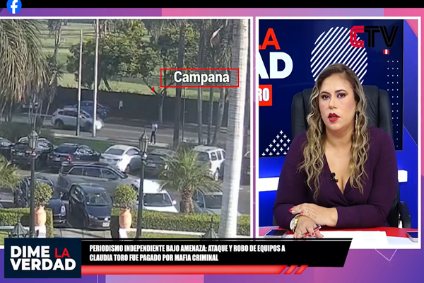 La periodista Claudia Toro, directora de CTV Perú denunció a través de su programa “Dime La Verdad” que el robo del cual fue víctima tuvo una intencionalidad de amedrentarla por las investigaciones al coronel de la Policía Nacional, en condición de retiro Harvey Colchado, y la línea del canal que es crítica del sistema de justicia que desnuda con evidencias el cuestionado Poder Corrupto Caviar: Villaran, Barreto, Heredia, Humala, Toledo, y Odebrecht.
