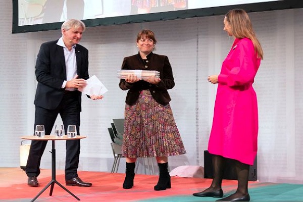 La directora general del libro, María José Gálvez, fue la encargada de entregar el testigo, un rollo con frases de obras de cada país que ha sido invitado de honor, a su homóloga eslovena Katja Stergar.
