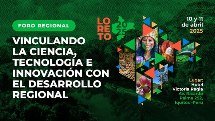 Este 10 y 11 de abril, la ciudad de Iquitos, será sede del Foro Regional "Vinculando la Ciencia, Tecnología e Innovación con el Desarrollo Regional", un espacio clave para promover el desarrollo sostenible de la región a través del conocimiento y la innovación.
