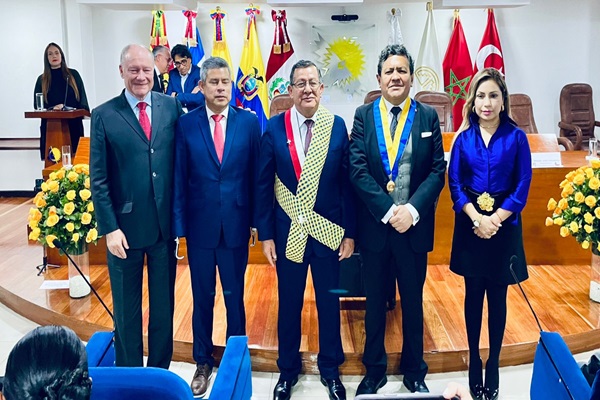 El Parlamento Andino condecoró al presidente del Congreso de la República, Eduardo Salhuana Cavides, por los méritos de su amplia trayectoria política y profesional, así como por su invaluable apoyo a la integración regional y respaldo a dicha organización.