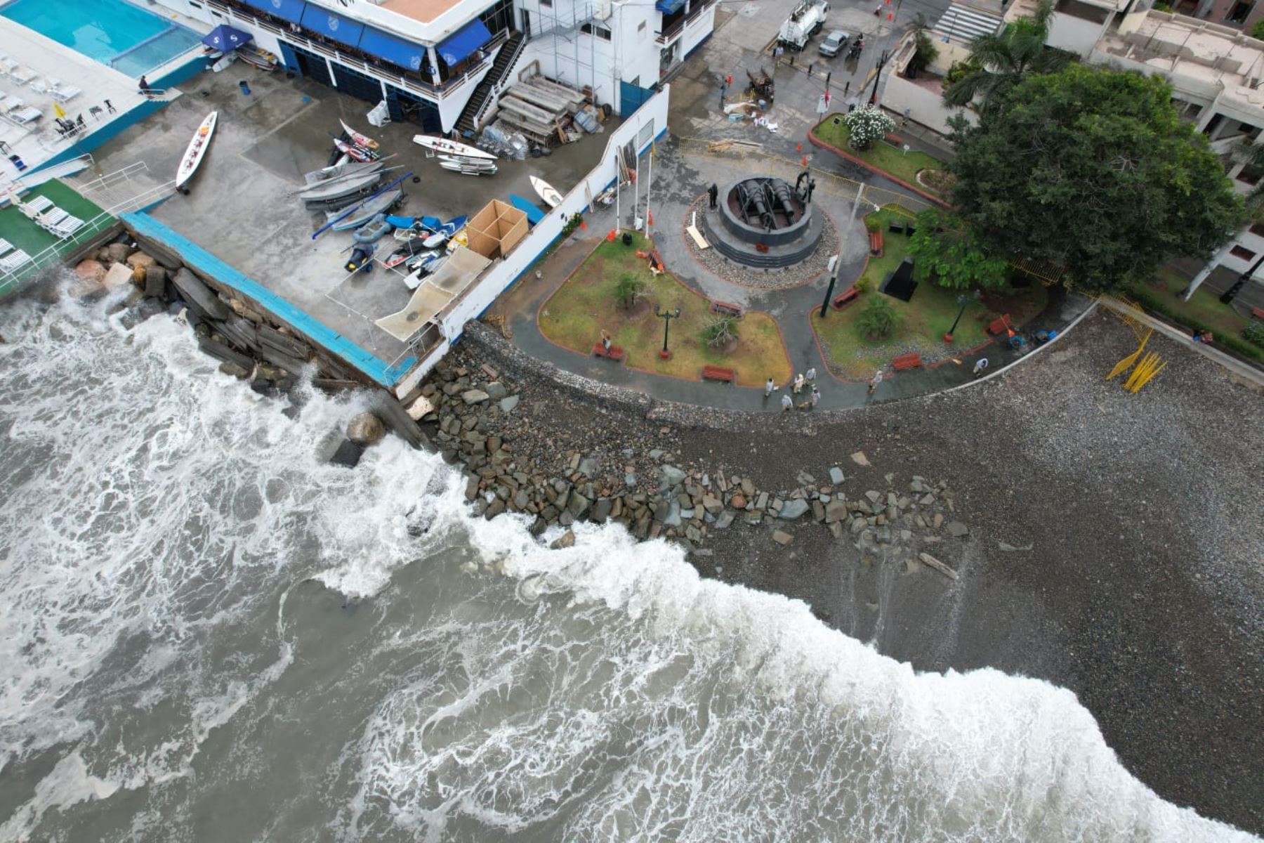 “El oleaje ha sido anoche, a partir de las 11 p.m., fue un oleaje alto, pero ya estábamos preparados. Hemos reforzado con relleno de piedras, lo que ha ayudado a proteger toda esta zona de playas”, indicó el alcalde.