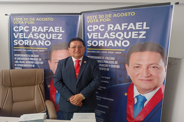 El candidato al Decanato del Colegio de Contadores Públicos de Lima (CCPL), Rafael Velásquez Soriano, de la lista N.º 2, obtuvo el primer lugar en la primera vuelta electoral con 2,664 votos, confirmando el respaldo mayoritario de los agremiados que confían en su experiencia, liderazgo y en los resultados alcanzados durante su gestión 2021-2023, reconocida como la etapa de la Unidad.