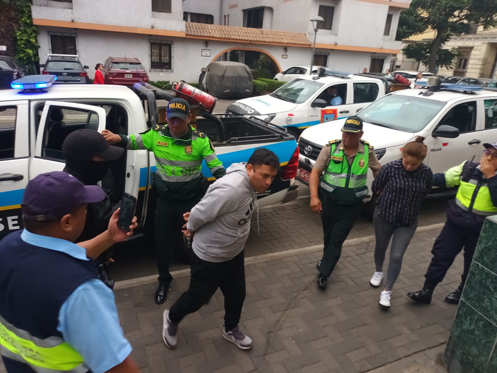 Posteriormente, los tres presuntos delincuentes fueron llevados a la comisaría de Barranco para diligencias de ley y la denuncia respectiva por parte de la agraviada.